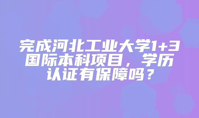 完成河北工业大学1+3国际本科项目后,学历认证是有保障的。河北工业大学1+3国际本科项目是与NCUK(英国北方大学联盟)合作的项目,该项目为学生提供了无缝衔接的1年国外大学课程,课程完成后...