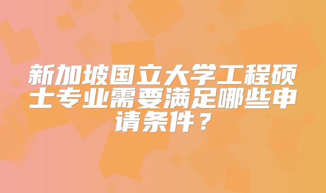 在科技迅猛发展、工程领域不断革新的当下,攻读顶尖学府的工程硕士学位成为众多学子提升专业能力、迈向理想职业的关键路径。新加坡国立大学(NationalUniversityofSingapore...